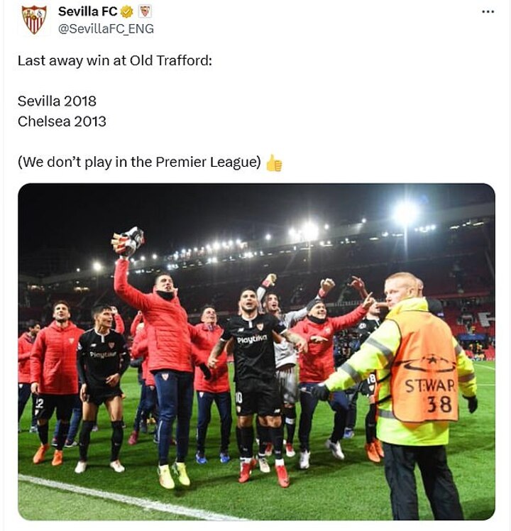 'Last away win at Old Trafford: Sevilla 2018, Chelsea 2013,' the club posted, adding 'We don't play in the Premier League.'