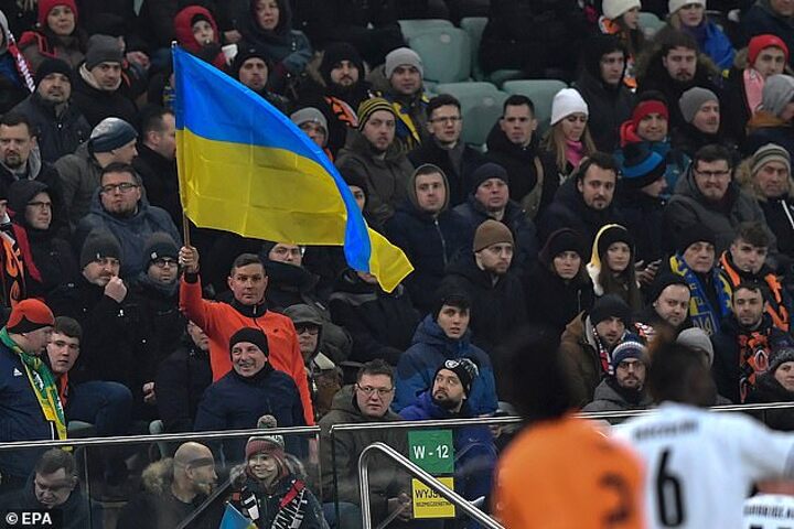 ‘Glory to Ukraine’ read some flags, which doubled up as blankets for many as Shakhtar returned to competitive action 937 miles north-west of Donetsk.