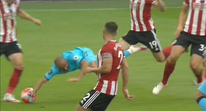 With Sheffield United 1-0 up, Harry Kane looked to have levelled for Tottenham, but the goal was controversially ruled out by VAR, with Lucas Moura deemed to have handled the ball in the build up.