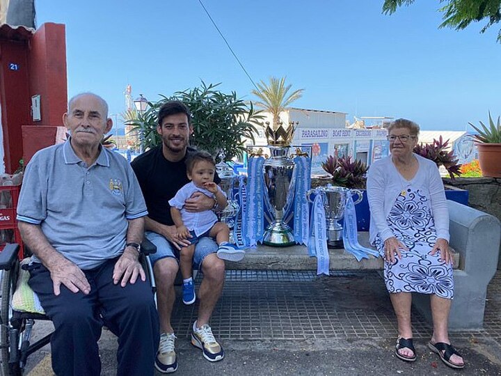 David Silva returned home to Gran Canaria with all three of Manchester City's trophies from last season.
