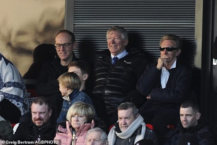 But they were also accompanied in the stands by former manager Sir Alex Ferguson and club legend Denis Law.