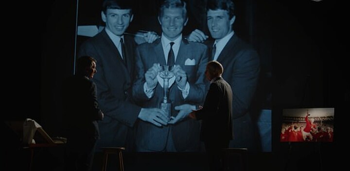 But this is a film that dovetails all of that grief with football, and specifically his exploits in the 1966 World Cup final.