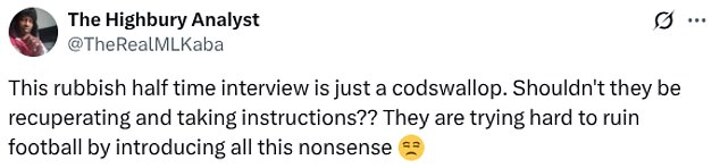 A fourth posted: 'This rubbish half-time interview is just codswallop. Shouldn't they be recuperating and taking instructions?