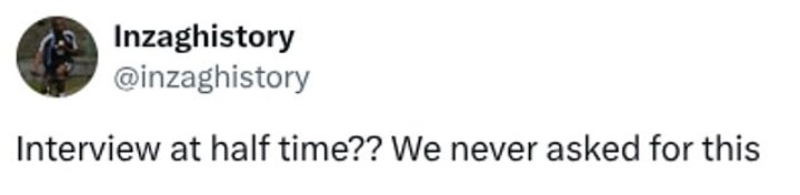 A third added: 'Interview at half-time? We never asked for this.'