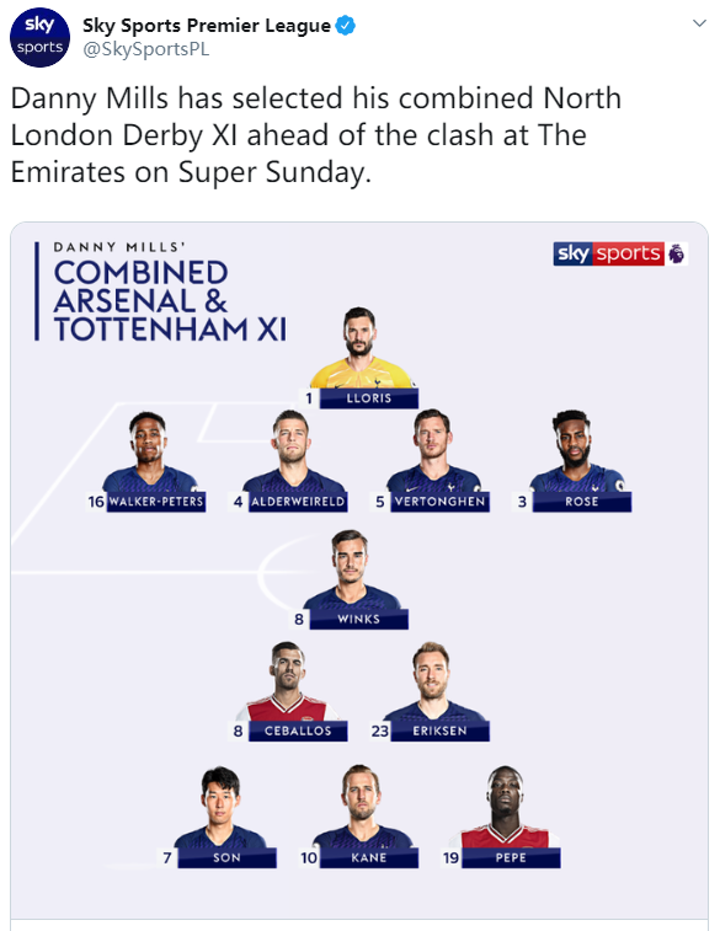 Sunday’s derby at the Emirates is expected to be a tight affair although Arsenal might be the slight favourites given Spurs appear to be having issues both on and off the pitch. Nevertheless, Mills still thinks that Spurs are far superior to their rivals as Dani Ceballos and Nicolas Pepe were the only Arsenal representatives in his combined XI.