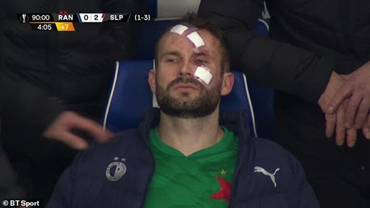 Kolar, 26, was left with a big gash above his left eye, the top of his forehead, as well as a cut below the eye, and was replaced by sub keeper Matyas Vagner.