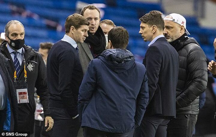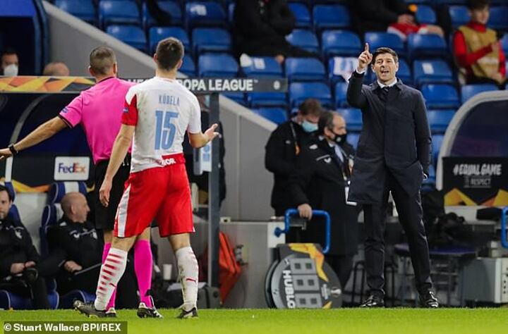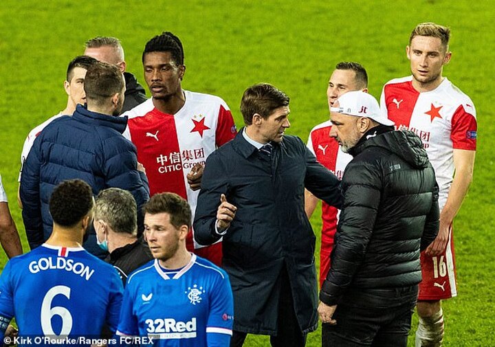 Gerrard then took a party of Slavia officials to task on the pitch as angry scenes raged in the tunnel area long after the final whistle.