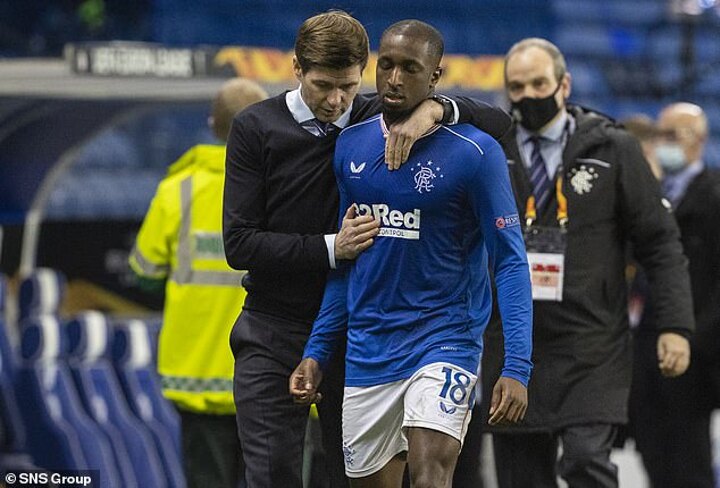 Rangers finished the game with nine players after substitute Roofe lasted just seven minutes before being dismissed for a dangerous high challenge which saw Slavia keeper Ondrej Kolar stretchered off.