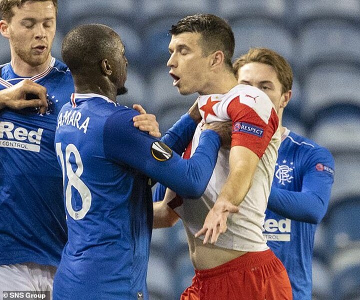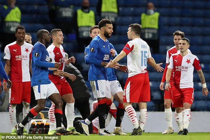 Slavia Prague defender Ondrej Kudela was reportedly 'attacked by fists and beaten in the tunnel' following an allegation of racial abuse made towards him by Rangers midfielder Glen Kamara.