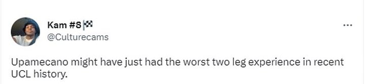 Another then wrote: 'Upamecano might have just had the worst two leg experience in recent UCL history.'