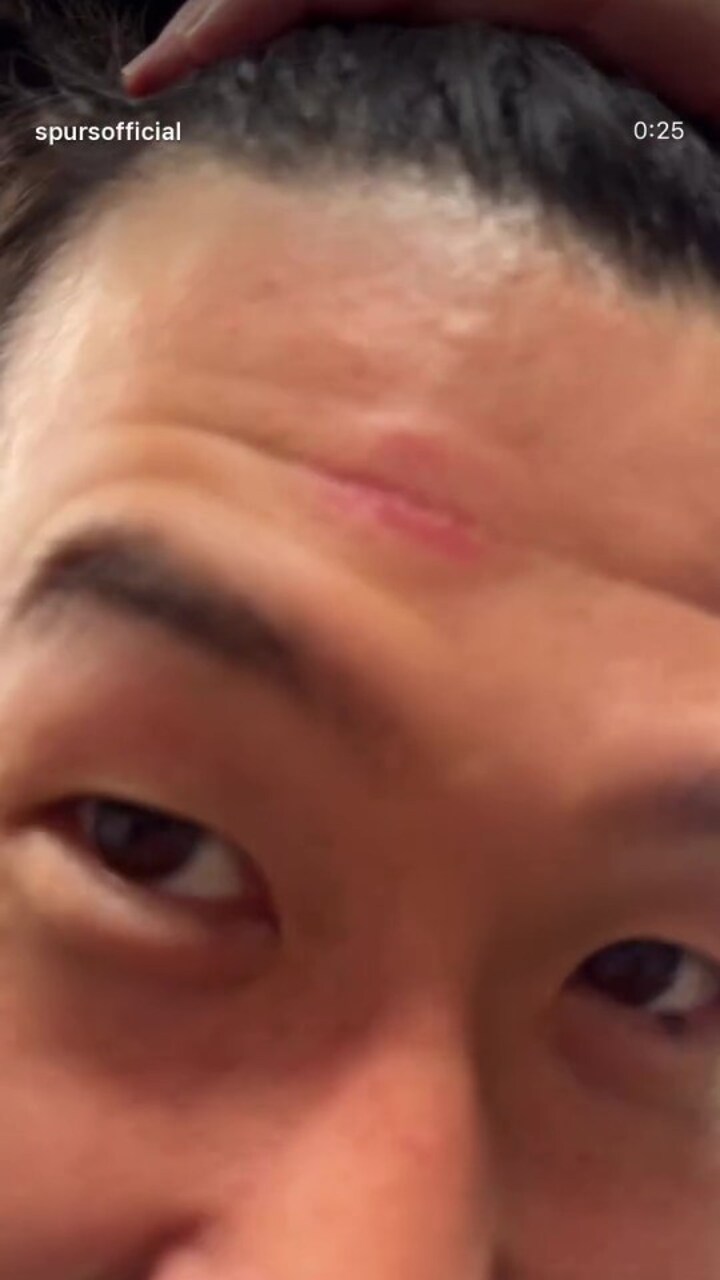 In the carnage of the celebrations, a dazed Son was seen holding his hair back to reveal a red mark.
