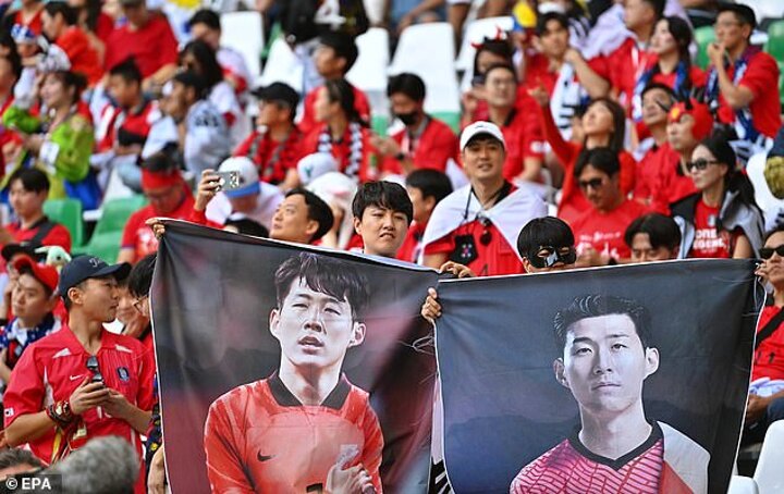 South Korean fans not donning Zorro-like facewear in tribute to their talisman instead showed their support for the 30-year-old with a range of banners and posters.
