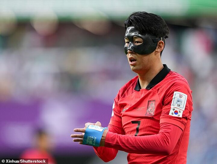Son appeared in the game wearing a protective mask after suffering an injury that threatened his involvement with the tournament.