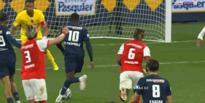 Reims were really struggling at this point and Yehvann Diouf kept them in it by tipping Dembele’s shot away before Achraf Hakimi struck over.