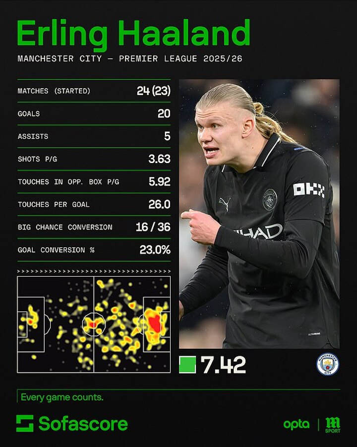But with just one Premier League goal in 2026 for the Norwegian, it would be a great time for him to rediscover his goalscoring touch against an inform Liverpool side to keep the pace up with Arsenal in first.
