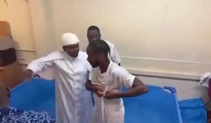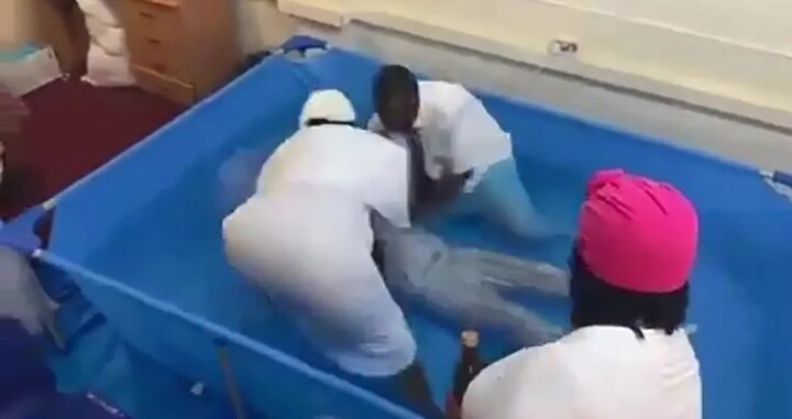 The England forward, 29, was filmed taking the plunge dressed in a white gown, with a congregation singing gospel songs.