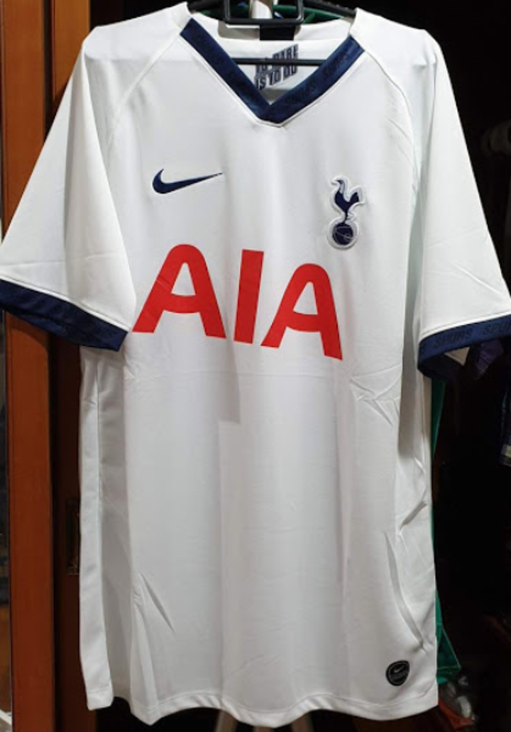 It's white with navy trim in the form of the sleeve cuffs, collar and back neck tape. A graphic with club motto 'To Dare Is To Do' will appear on the inside neck of the new Spurs 2019-2020 home jersey by Nike. The AIA sponsor is of course red.