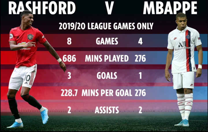 Manchester United striker Marcus Rashford has been criticised for his form this season - but he's been more prolific than Kylian Mbappe.