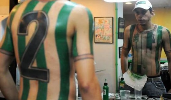 Felipe Alvarez went and got Atlético Nacional's green and white stripes inked on his upper body and topped it off with Escobar's number two squad number.