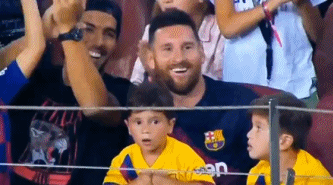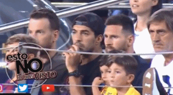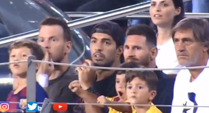 Suarez and Messi were supporting Barca from the stands throughout the 90 minutes and the Argentine's middle child got a bit too ahead of him.