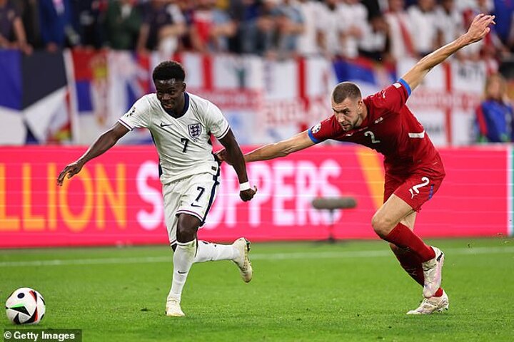 Serbia did manage a few incursions before the interval. Alexander-Arnold gave the ball away cheaply in a dangerous area on the edge of the England box and Mitrovic lashed a snap-shot just wide of Pickford's left-hand post. But, most of the time, when Serbia threatened, either Rice or Bellingham was there to thwart their plans.