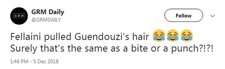 It was clear from Guendouzi's reaction that he did not take kindly to the underhand tactics of his opponent, and neither have many supporters, with a number calling for retrospective action against Fellaini.