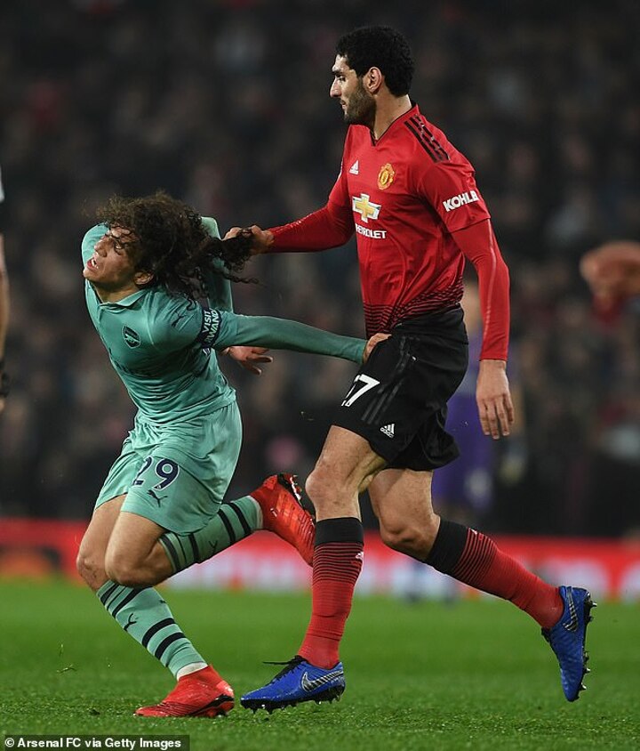 If he can't have long hair nobody can. That appeared to the message from Marouane Fellaini on Wednesday evening as he tugged at Matteo Guendouzi's long locks.