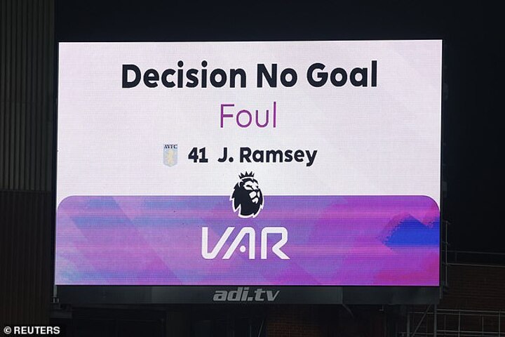 It took more than three minutes for Leon Bailey’s goal to be disallowed, but it was an example of VAR working correctly. From the initial camera angle, it was unclear if Jacob Ramsey had fouled Wes Foderingham but the second angle made it obvious ref Anthony Taylor should change his decision. Across the game there were five VAR checks, with none going the home side’s way.