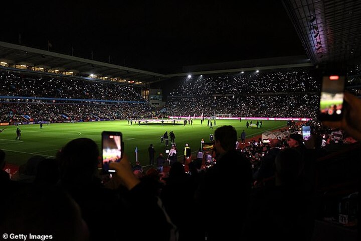 About half-a-dozen reminders were given over the public address system for those inside the stadium to download the official Aston Villa app, with fans then prompted to hold their phones above their head.