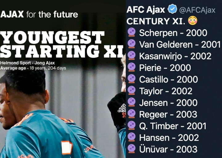 In the Netherlands' second division game against Helmond Sport, Ajax II team sent 11 starting players who were all born after 2000. The average age of that squad was 18 years & 204 days. It could be the youngest starting XI ever.