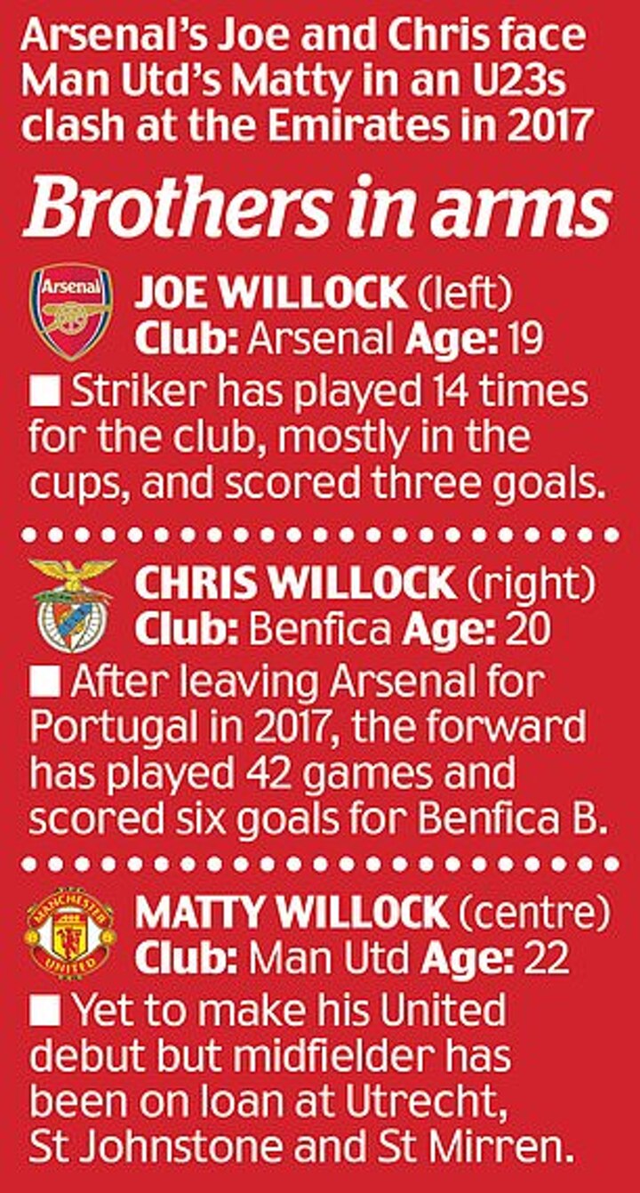 There is also Matty, 22, a Manchester United academy graduate who was recently on loan at St Mirren. Chris, 20, who also came through at Arsenal, signed for Benfica in 2017.