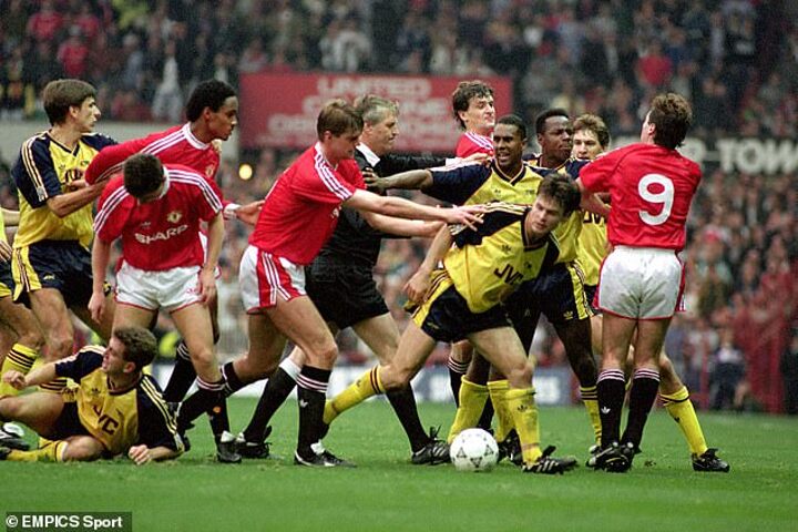 Arsenal had begun the season well — winning five and drawing three of their eight league games — when a simmering rivalry with Manchester United boiled over. Limpar put Arsenal in front before Denis Irwin flew into the winger with a reckless tackle. Winterburn responded in kind. Cue chaos.