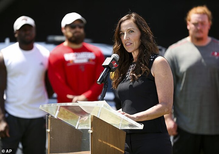 Her biography on the franchise's website says she 'has been the driving force behind many of the Buccaneers' innovative, forward-thinking fan engagement'.