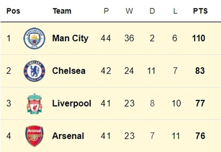 Behind them in the table are Chelsea, who managed 83 points from 42 points matches they played from january through December.