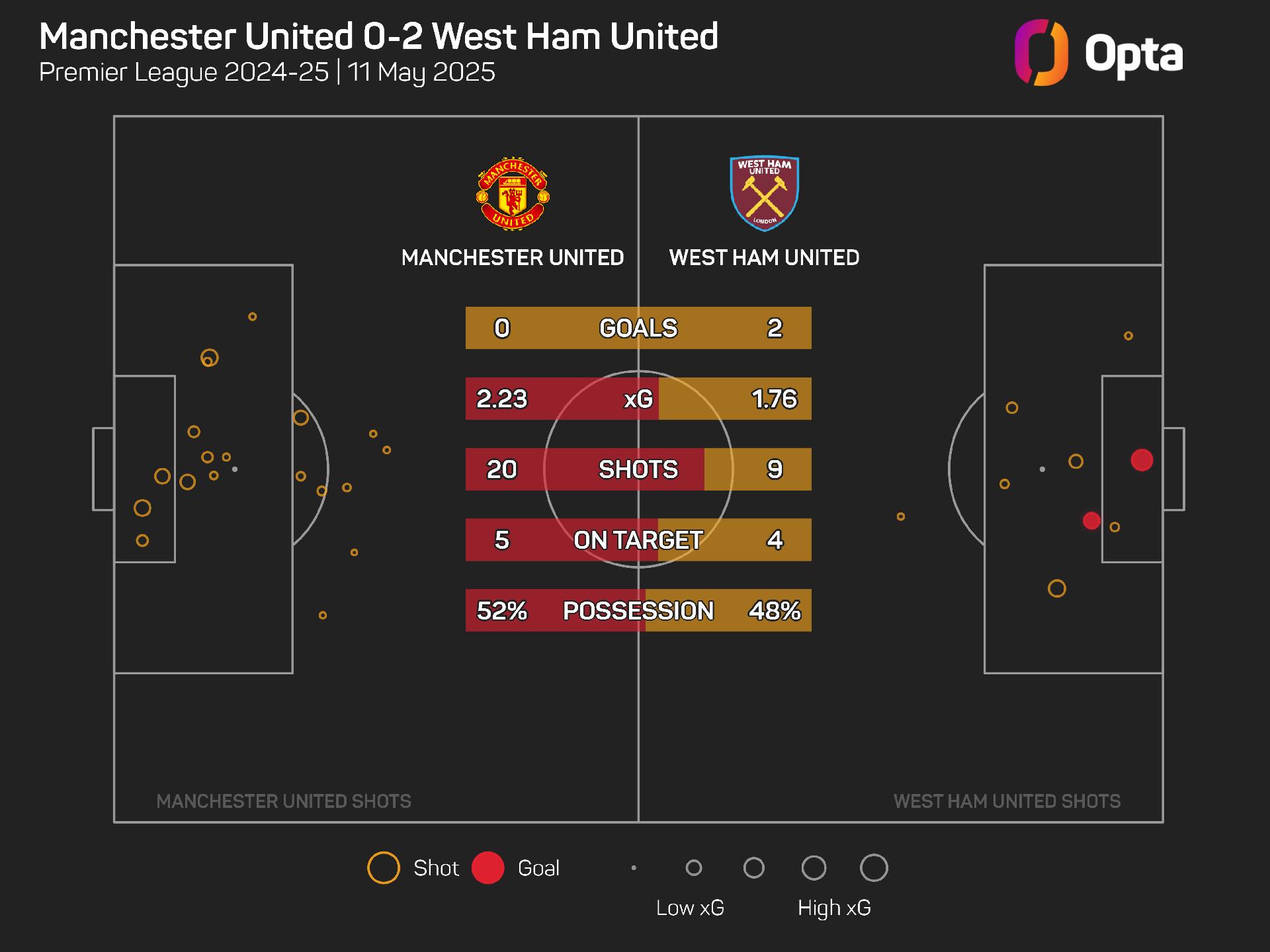 As such, it is at the other end they need to improve if they want to catch out United, given they have only scored seven times away from home, though they have slightly outperformed their 6.0 expected goals (xG).