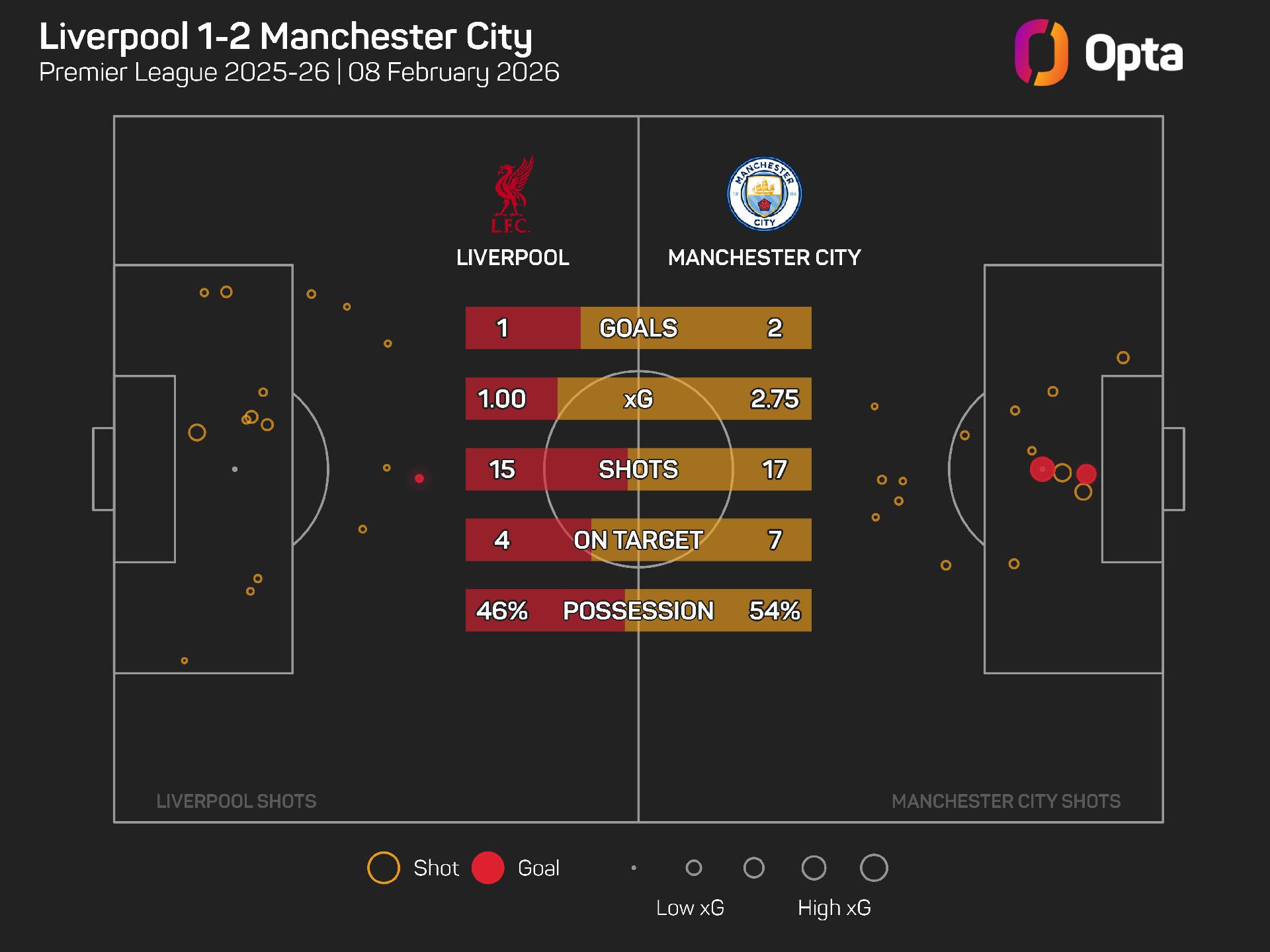 Against only Man Utd (22) has Salah recorded more goal involvements than he has against City (21 – 13 goals, eight assists).