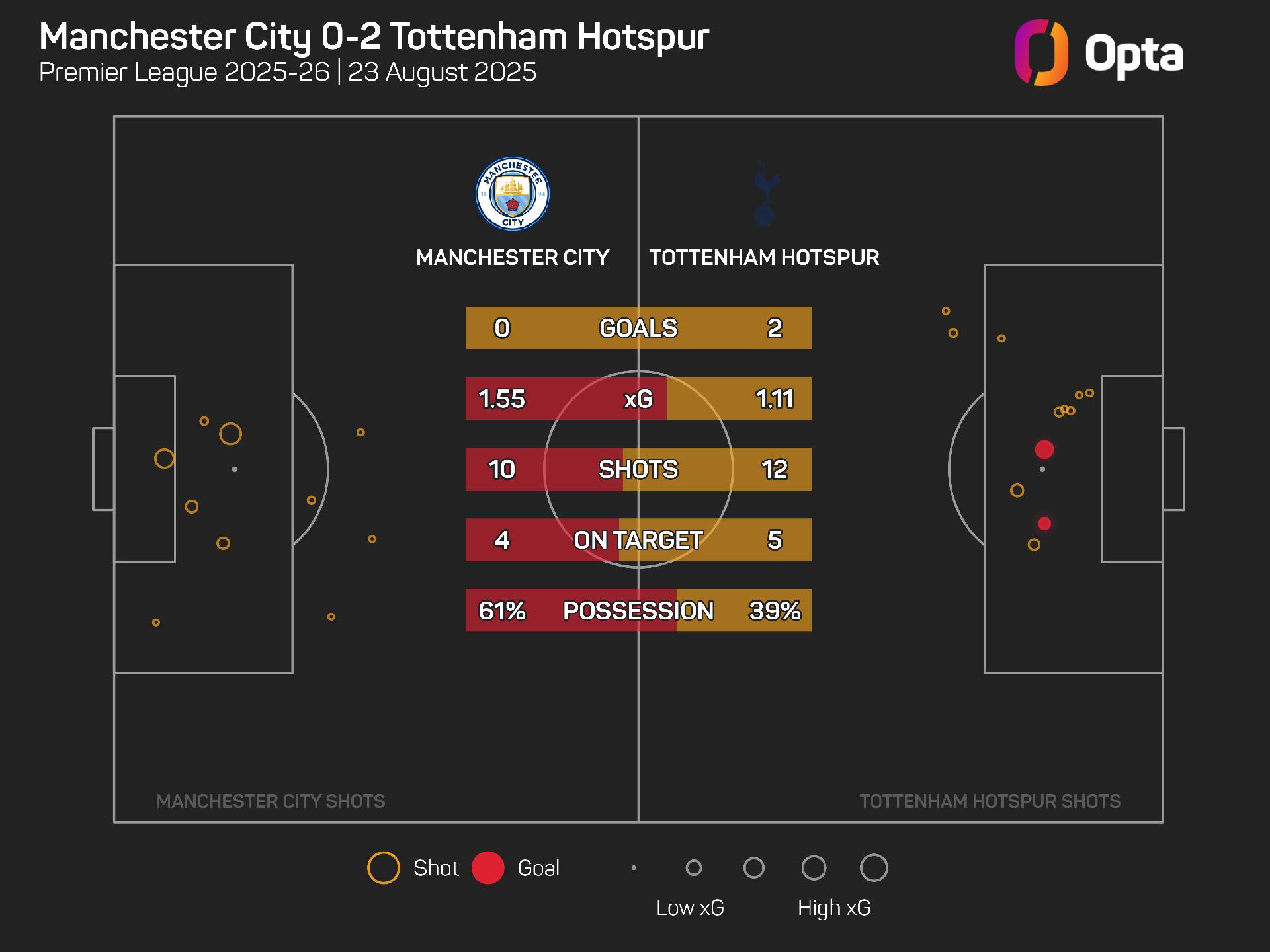 Last weekend, City both attempted and faced 11 shots against Wolves, the seventh time this season they had either had fewer or as many attempts as their opponents in a Premier League game, their joint-most in a season under Guardiola.