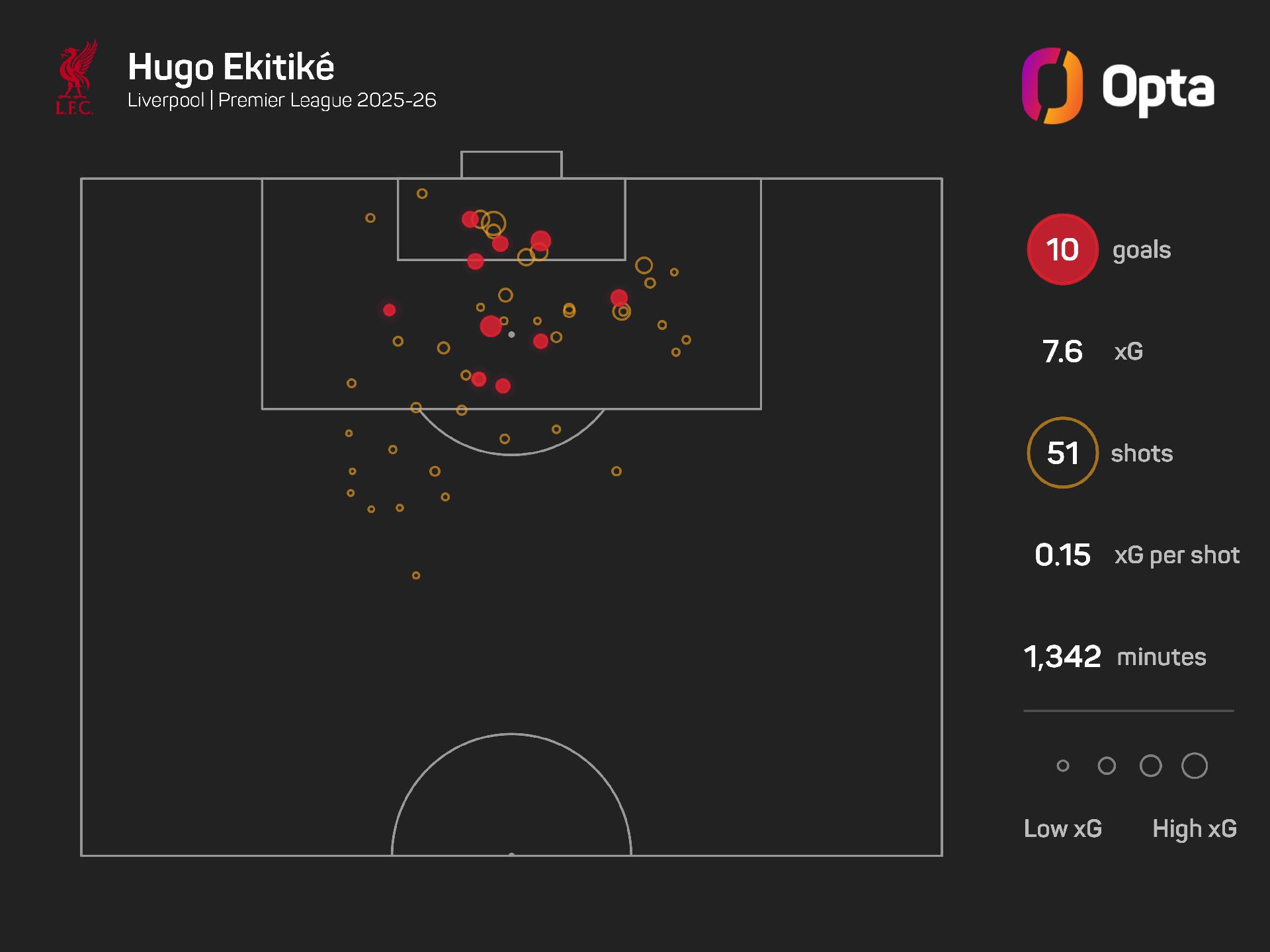 Ekitike has scored or assisted every 112 minutes in the Premier League this season (10 goals, two assists in 1,342 minutes), the best ratio by a Liverpool player in their first season at the club since Mohamed Salah in 2017-18 (32 goals, 10 assists – one every 70 minutes).