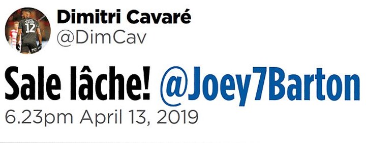 Striker Cauley Woodrow tweeted that Stendel had been 'physically assaulted by another manager' and had 'blood pouring from his face', while his team-mate, Dimitri Cavare, branded Barton a 'sale lache', or 'dirty coward' in French. Both were told to remove the posts.