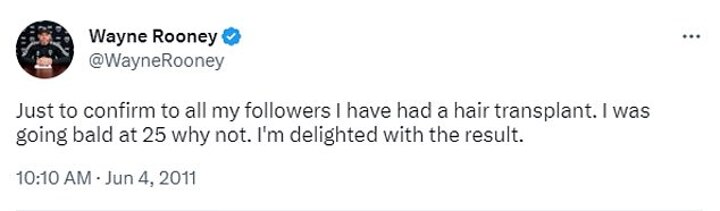 Perhaps the most high-profile hair transplant of recent times was England and Manchester United legend Wayne Rooney.