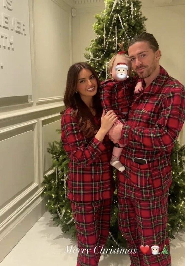 On Christmas Day, Grealish’s girlfriend, Sasha Attwood, shared a photo on social media showing the couple in matching plaid pajamas with their daughter, Milla Rose.