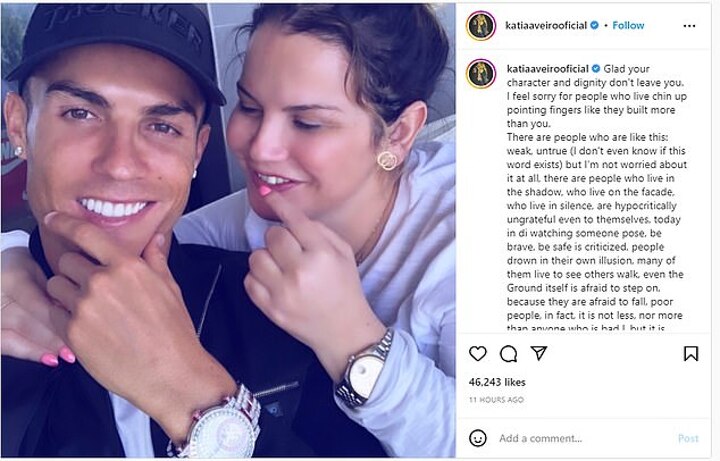 Aveiro watched on as her brother Ronaldo crashed out with Portugal in the quarter-finals of the competition - where he was seen in tears at full-time.
