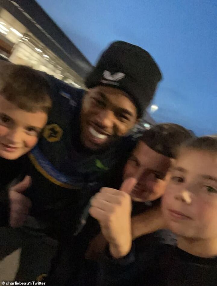 The Spanish international made the youngsters' day when he posed for a quick photo outside a Sainsbury's in Wombourne, Staffordshire. But things improved for the lads when Traore agreed to a running race to 'the blue car'.