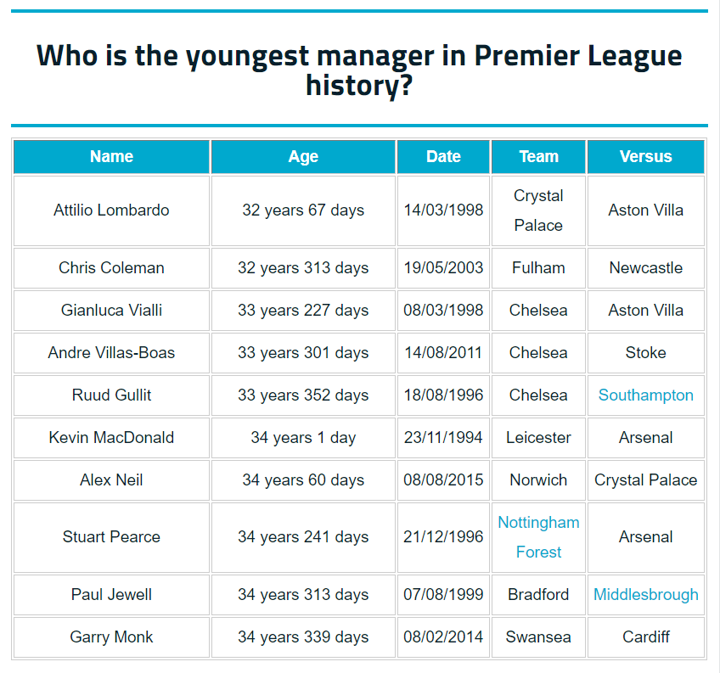 Similarly, Chris Coleman and Gianluca Vialli, who are the second and third youngest managers respectively, were both initially interim appointments, though both proved more successful than Lombardo.