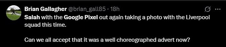 A fourth user added: 'Salah with the Google Pixel out again taking a photo with the Liverpool squad this time. Can we all accept that it was a well choreographed advert now?'