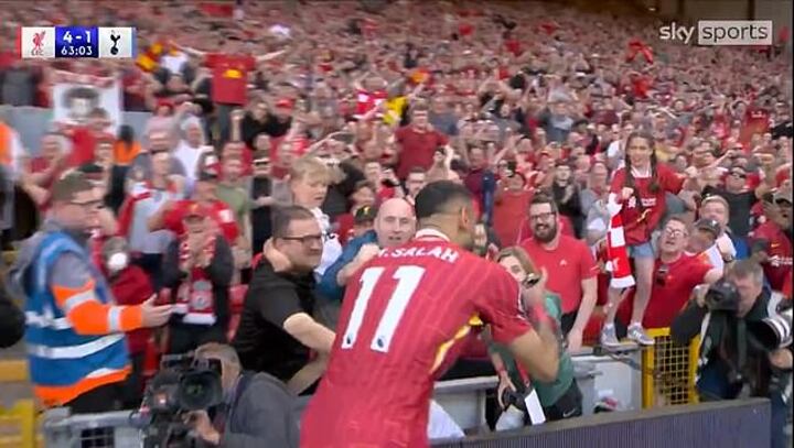 Football fans have aired a theory behind Mohamed Salah's seemingly spontaneous selfie celebration with Liverpool fans after scoring in the Reds' 5-1 win to seal the Premier League title.