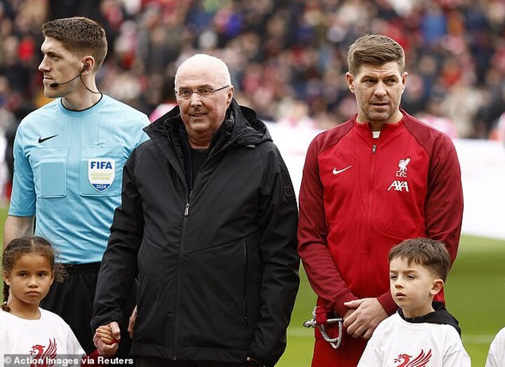 Eriksson received a touching ovation when he led out the Liverpool Legends side for their match with Ajax on Saturday.
