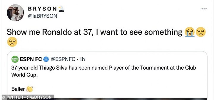 Several Twitter users pointed out that while Ronaldo and Lionel Messi - who is three younger than his Portuguese rival and just four years Silva's junior - appear on the wane, the Brazilian remained as influential as ever.