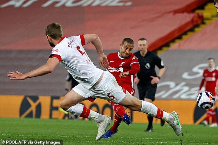 Finally, though, with almost the last kick came the moment that might have the biggest impact for Thiago Alcantara. His first Liverpool goal, at the Kop End, was a beauty, a precision drive that sped past Southampton goalkeeper Fraser Forster and kept his side’s top-four hopes alive.