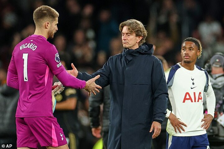 Thomas Frank hit back at those who booed goalkeeper Guglielmo Vicario and claimed they were not 'true Tottenham fans' after losing at home to Fulham.
